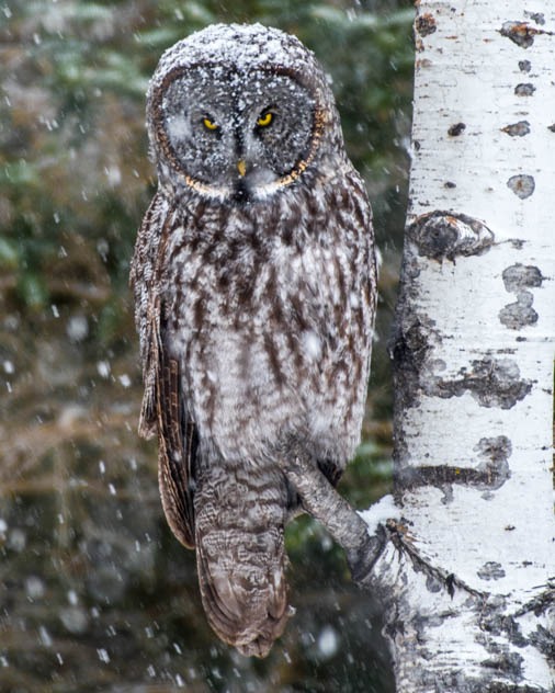 Snowy Owl, passing by me as it hunts along the frozen Manitoba Prairie
