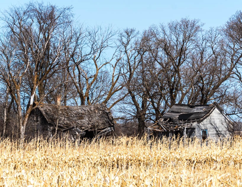 Once again, while on a road trip, this time to the southwest corner of Manitoba, on my return home I stumbled upon this old farmhouse just northeast of the town of Grande-Clairiere. Whenever I find these old buildings I make a point of taking my photos from the road, rather than walking on private property that I have not yet asked permission to go on. Many of these old farms are surrounded by farmland and often have livestock grazing in the fields, or crops that are planted and growing. So one has to respect the rights of the property owner and be happy to get a photo of the outside of the building before nature reclaims it.