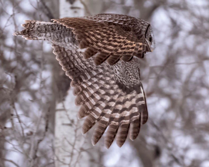 Wings up. - Great Gray Owl (Strix nebulosa) in Flight